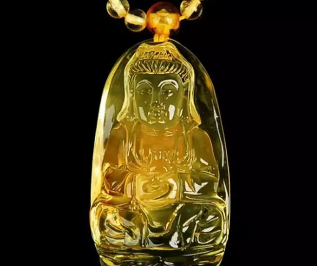 蜜蜡雕刻的观音挂件
