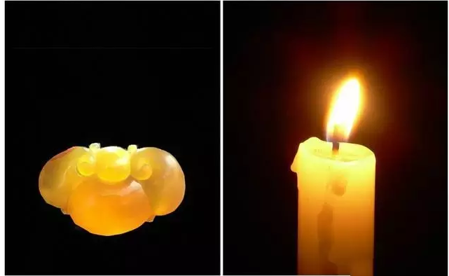 蜡:像蜡烛的蜡体一样,浑而透光,明而不澈,称为蜡