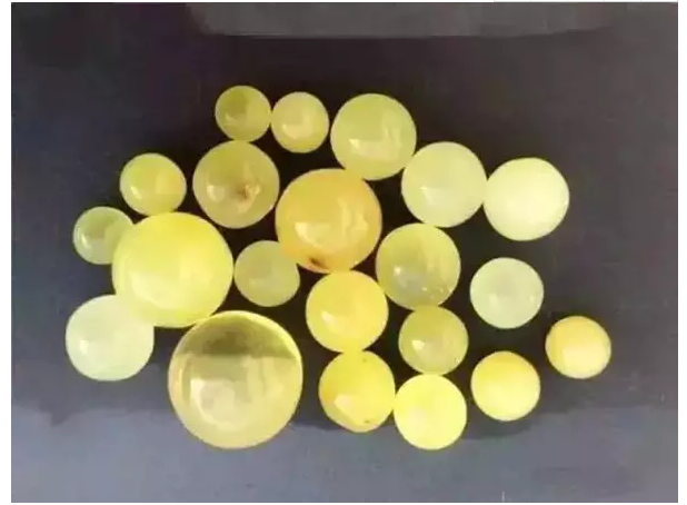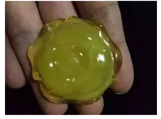 此外,由蜜蜡粉、碎蜜蜡热熔凝固而成的再生蜜蜡,也是以次充好的常见品种。在市场上,有人会把二次合成的再生蜜蜡、贵族蜜蜡、雪山蜜蜡都称为蜜蜡,但其与天然蜜蜡有很多区别,一定要仔细鉴别。