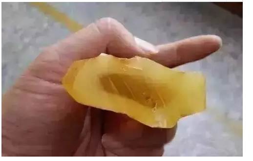 5、将酒精或乙醚等有机溶液滴在柯巴树脂上30秒钟后,柯巴树脂会被腐蚀而变得粘手。