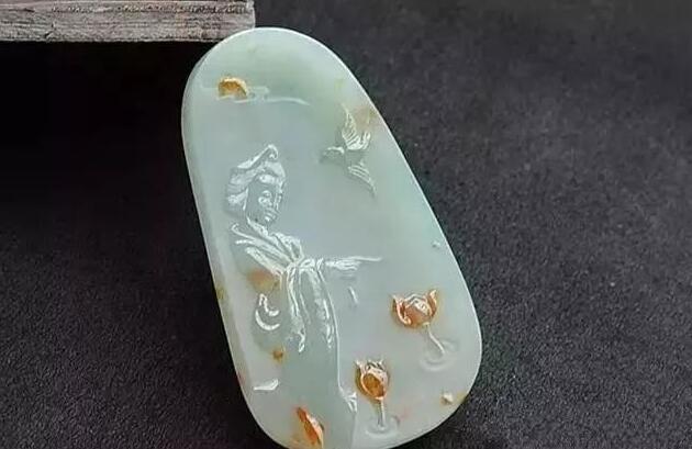 不过,要鉴定洒金翡翠的价值,除了看它本身的种水之外,还有看“金”的分布情况。漂亮、均匀的洒金会给翡翠锦上添花,玉雕师还会根据洒金的分布情况进行俏色,让种水一般的翡翠身价倍增。另外,洒金翡翠除了漂亮、独特外,还有招财的吉祥寓意!