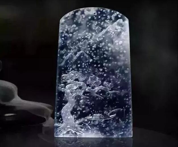雪花棉大多存在于冰种、玻璃种翡翠里,有纯白轻盈的“雪花”,漂浮在翡翠内部与之相融,数量多但是疏密有致、均匀有序,有种“漫天飘雪”的意境美!