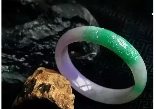 春带彩就是特殊的飘色,同时含有绿色和紫色两种高贵而漂亮的颜色,看起来充满生命力。这种翡翠极为稀少,价值非常高!
